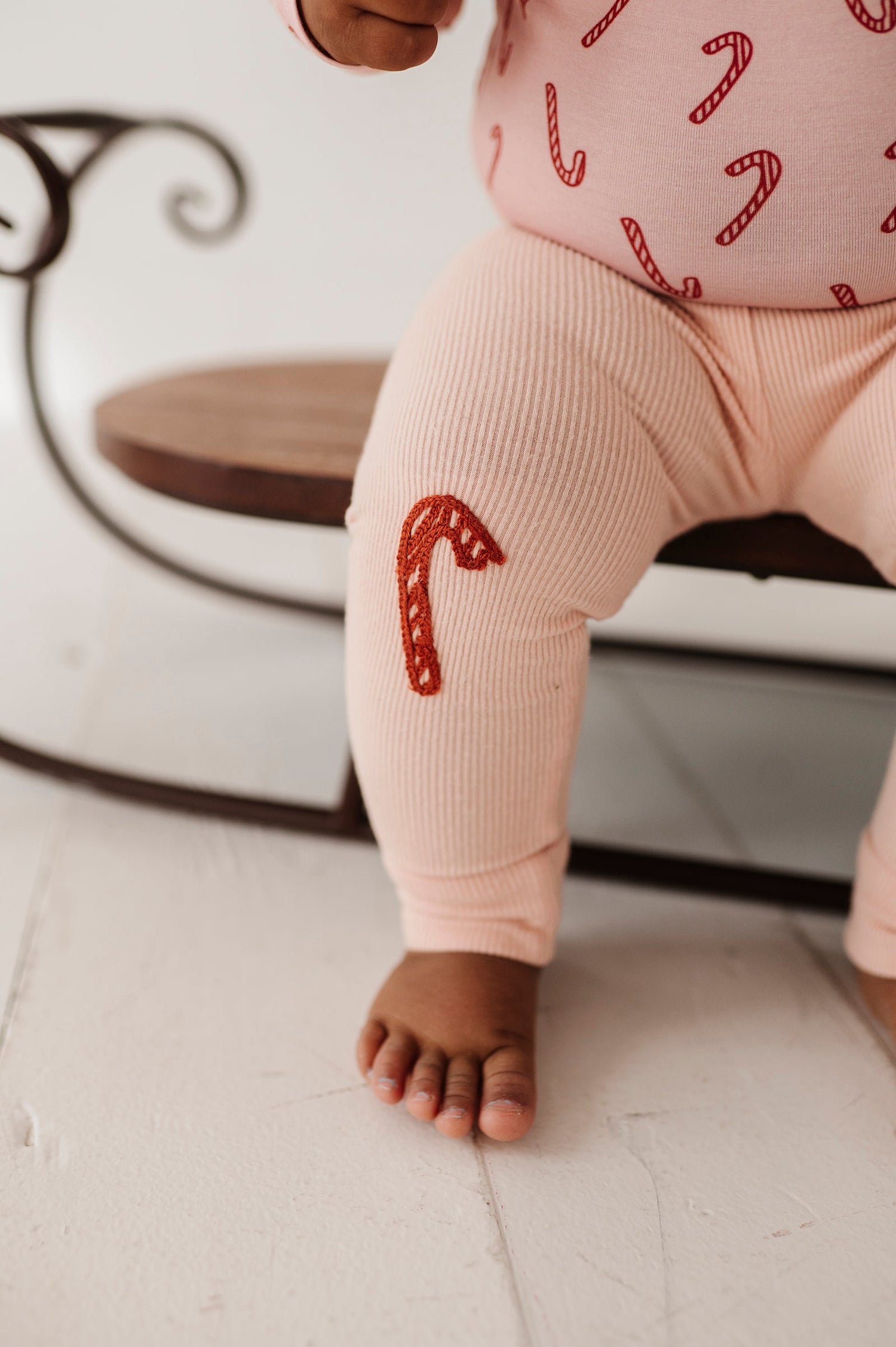 Add durability and charm to your child’s wardrobe with our Candy Cane Patch Ribbed Leggings. Designed for active play, these leggings feature reinforced knee patches and a stretchy, comfortable fit.