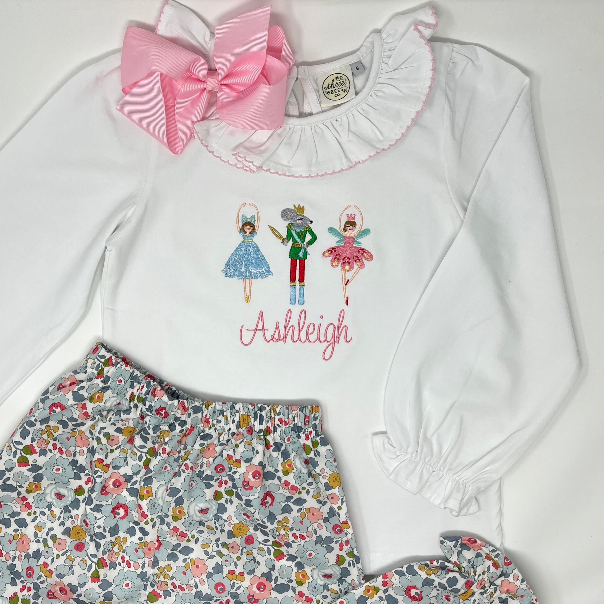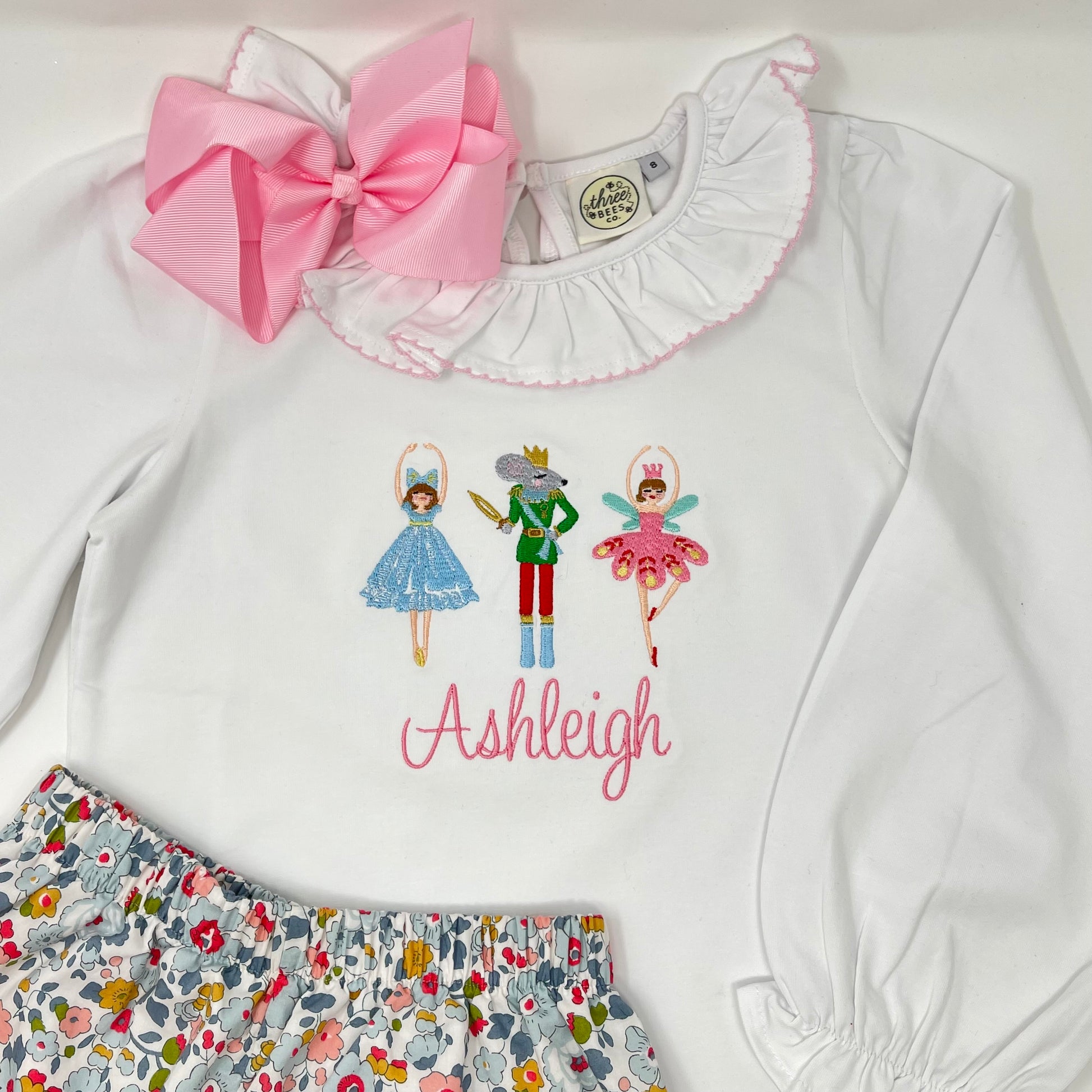 Our Christmas Nutcracker Trio Embroidery Girls Top is perfect for your little one. Choose your favorite style top, add a name and she'll be set all Christmas season long!