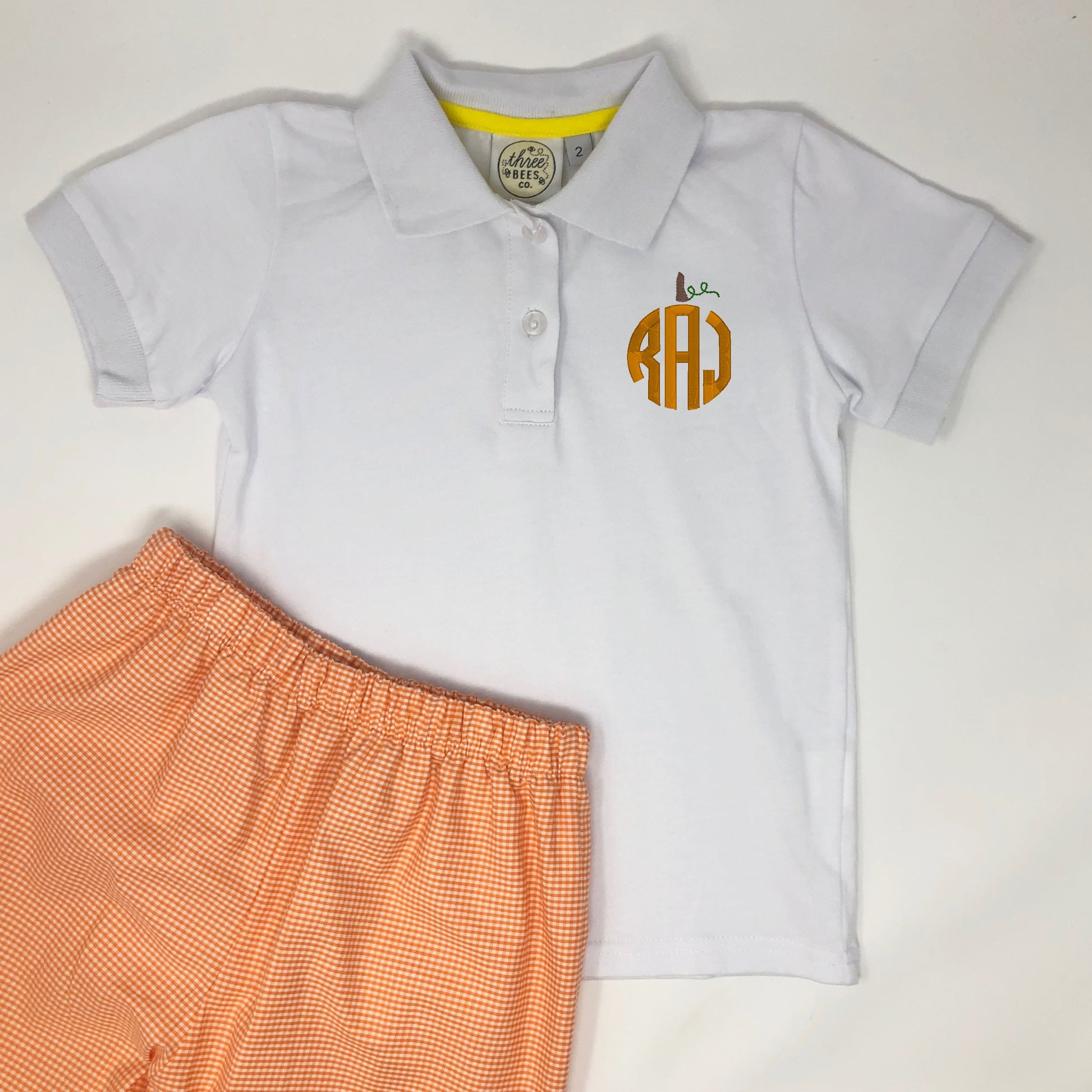 This Pumpkin Monogram Polo features a classic collared design with a subtle pumpkin motif monogram, blending timeless style with seasonal charm. Crafted for comfort and a polished look, it’s an ideal choice for those seeking a refined yet festive wardrobe addition. Perfect for casual gatherings or layering under jackets, this shirt adds a touch of expert-tailored detail to your autumn outfits.
