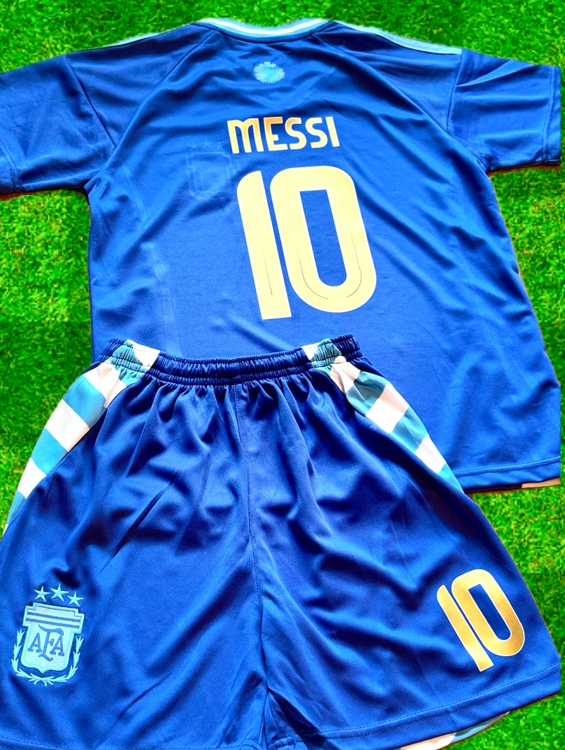 Lionel Messi Kids Soccer Jersey Set Football Youth Toddler Sizes. Futbol Youth Toddler Football Shirt and Shorts matching set. Toddler Youth Tshirt Awesome Youth Soccer Jersey and shorts set of 2. Size 2T, 3T, 4T, 5T, Extra Small, Small, Medium, Large, Extra Large, 18, 20, 22, 24, 26, 28, 30. All in stock ships within 12 hours from order time. We ship from Missouri. All soccer jerseys are brand new and never tried on. Amazing Screen Printing & Embroidery.
