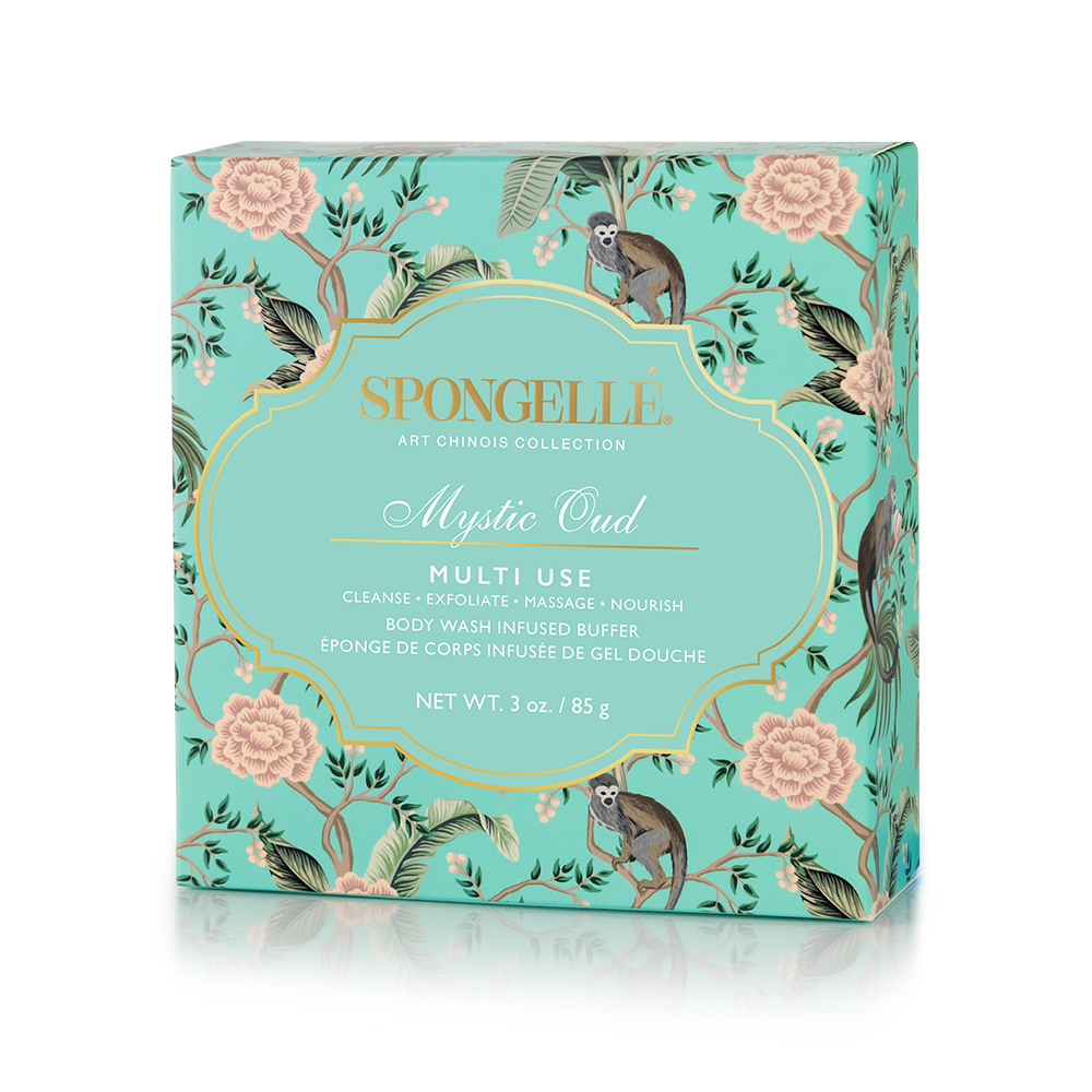 Discover history’s rich style of exotic art and the elaborate decor of the 17th century. Animal motifs dance among lush fragrances creating a masterpiece designed for the ultimate pampering experience. Spongelle’s Art Chinois in Mystic Oud Body Wash Infused Buffer cleanses, exfoliates, massages, and nourishes your skin in the sultry aroma of bergamot, carnation, and oud.