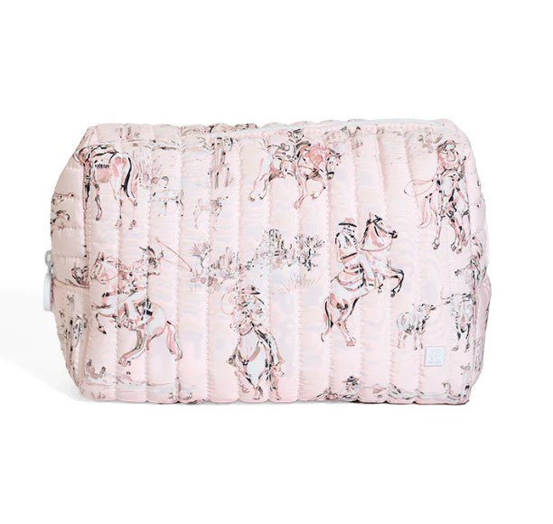 Perfect for Everyday use! This ultimate large, soft, lightweight quilted zippered pouch is ideal for diapers, wipes, toiletries, cosmetics and everything in between. This style is designed to stand on its own and has an interior pocket for smaller needs. Both functional and beautiful, this would be a great addition to any TRVL set and it is wipeable inside and out and machine washable.