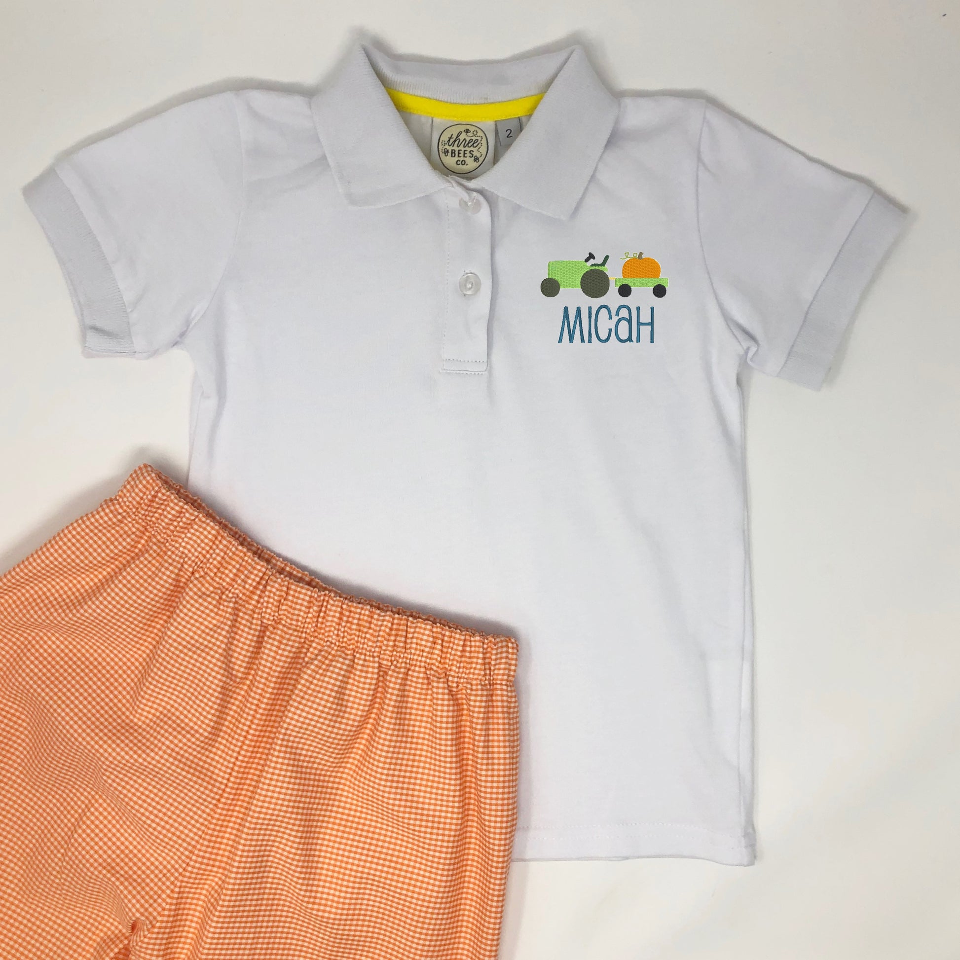 Designed for everyday fall comfort, this personalized Tractor Pumpkin Collared Shirt combines seasonal charm with practical style. Its inviting pumpkin and tractor motif adds a festive touch, while the collared design offers a neat, polished look ideal for young children. Durable and easy to wear, it’s an expert choice to keep little ones cozy and stylish throughout the autumn season.
