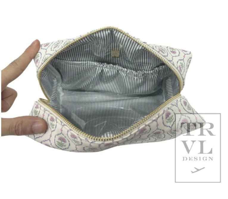 Perfect for everyday use, the Luxe Woven Everyday Cosmetic Bag is a fresh take on our original woven - now updated with a brighter finish, and coordinating pinstripe interior. This style is designed to stand on its own and has an interior pocket for smaller needs. Both functional and beautiful.