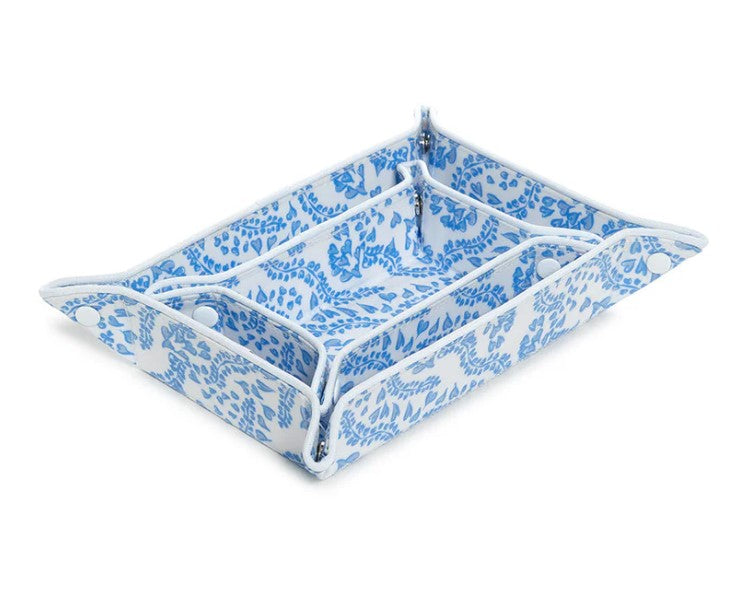 Stay organized with our Tray Set, designed to catch all your pocket-sized items for home, office, or TRVL. The four corners can be unsnapped to easily fit in luggage and placed on a hotel nightstand, to ensure no valuables are left behind. Makes for a great gift!