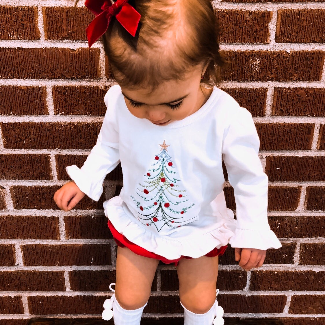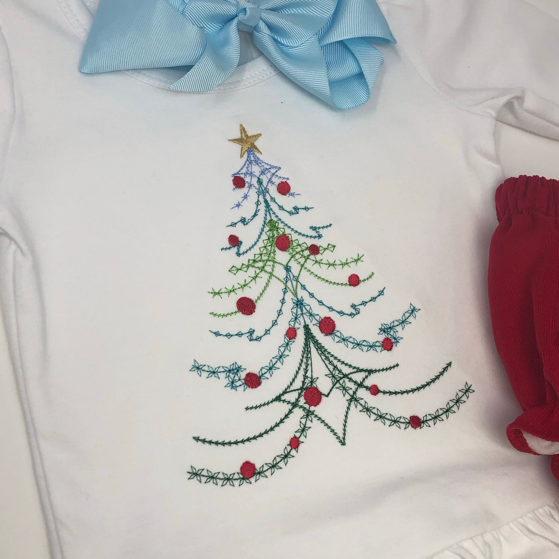 Our Vintage Christmas Tree Embroidery Top is perfect for your little one. Choose your favorite style top. Add a name for personalization.