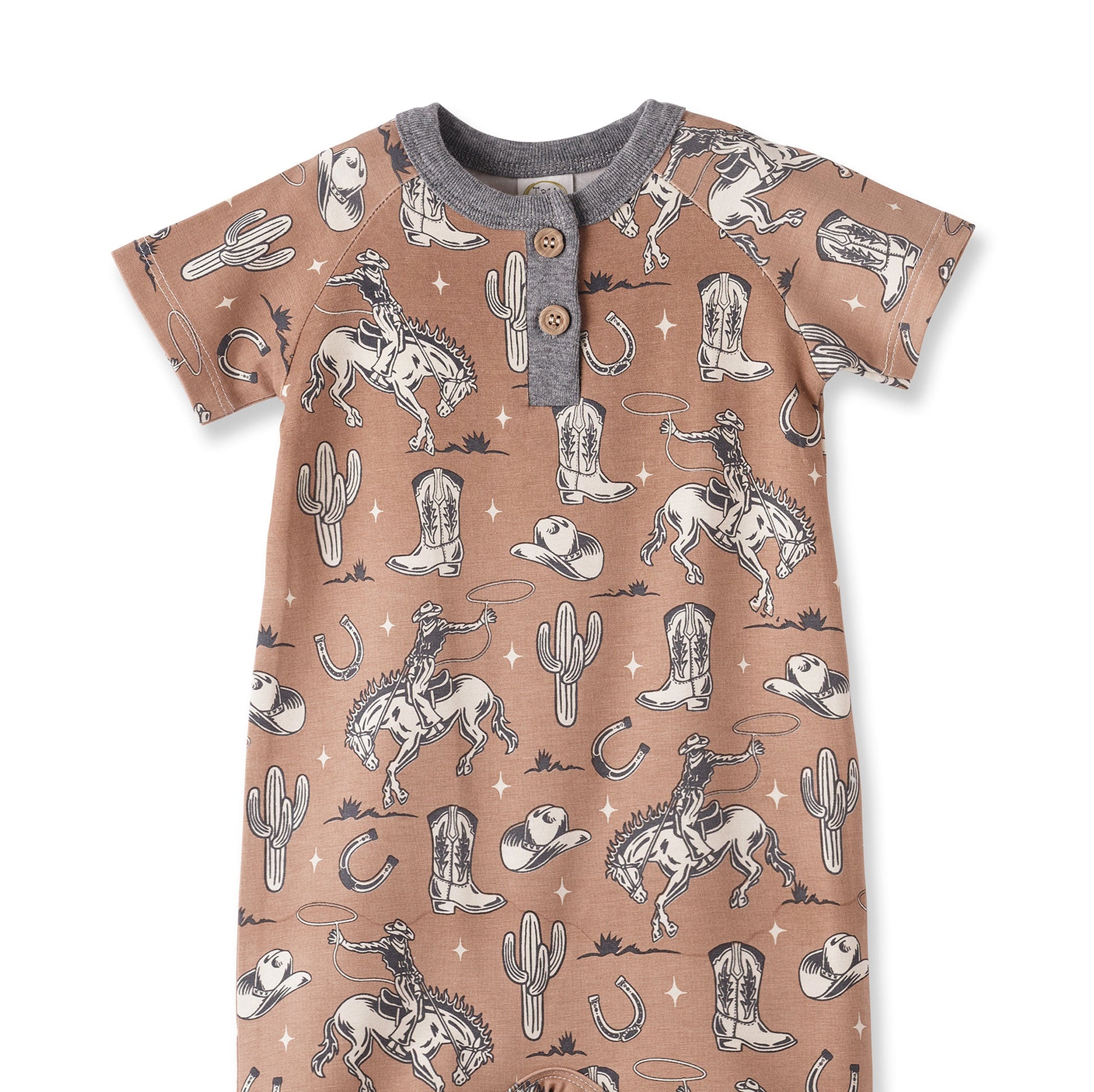 Wild Wrangler/Brown Western Bamboo Shorty Romper for Boys